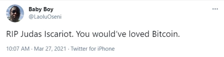 RIP Judas Iscariot. You would've loved Bitcoin.