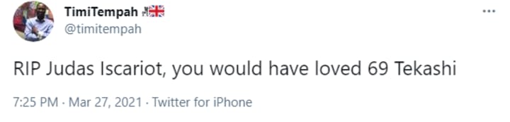 RIP Judas Iscariot, you would have loved 69 Tekashi