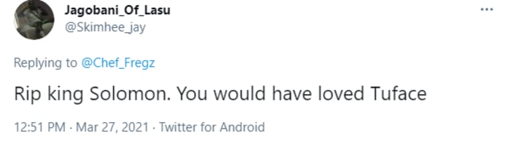 Another person of course had to bring Baba Tuface into this. They wrote: