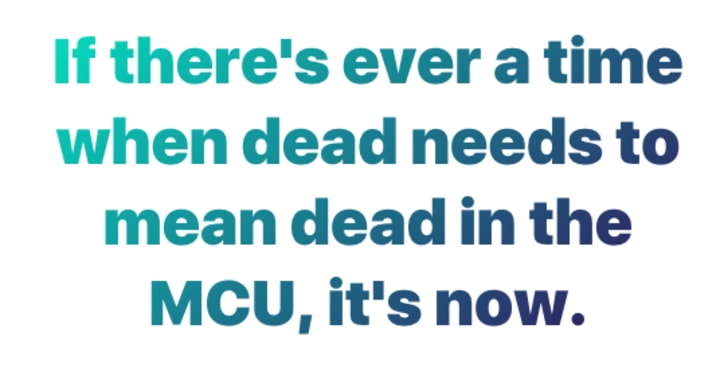 Next year sees the climax of Phases 1-3 of the MCU, Avengers: Infinity War. Uniting more heroes than you can shake an Official Handbook at, Infinity War will raise the stakes to the highest level we've ever seen in a Marvel movie. After all, Thanos is coming — and he has his sights set on the limitless power of the Infinity Gauntlet! If there's ever a time when dead needs to mean dead in the MCU, it's now.