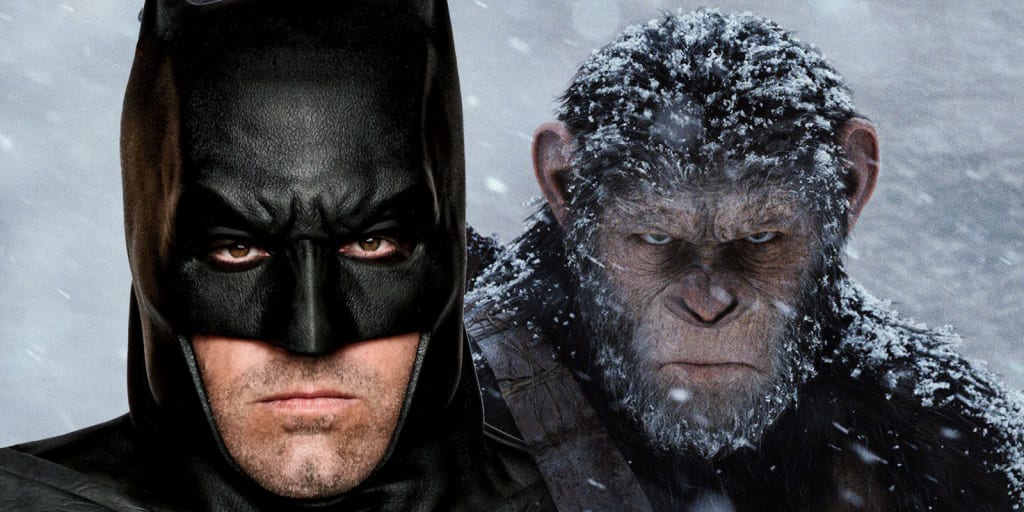 Although Reeves only directed Dawn of the Planet of the Apes and this year's War, there has been a strong story arc in the series since it began in 2011, charting the unfortunate life of Andy Serkis's Caesar. There is a decidedly dark quality to the remnants of mankind battling the equally pummeled apes, and War has a bleaker tone than its predecessors. It seems that it is this macabre underbelly that has prompted Reeves to up the misery for his Batman solo film.