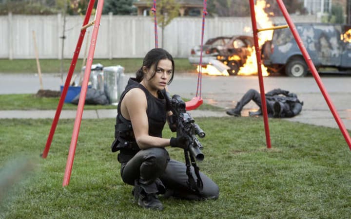 Whilst on the subject of LOST, it is a surprise that feisty Michelle Rodriguez's name hasn't popped up already. Once tipped to star alongside Sigourney Weaver in an all female version of The Expendables, the actress made her breakout as a tough female boxer in Girlfight. Who remembers spunky Private First Class Jenette Vasquez in 1986's Aliens? What if Rodriguez's character was some distant relative of Vasquez? All she would need is a red bandanna and good to go. No stranger to a tough-guy role, Rodriguez plays a badass in everything from the Fast & Furious films, to Machete and even Resident Evil. EW described her as: