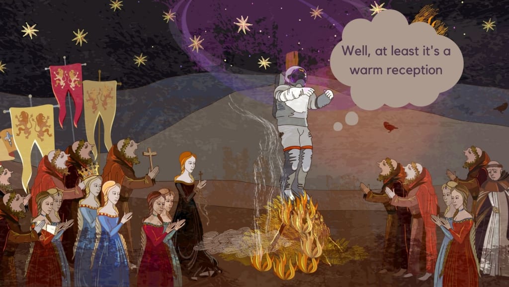 Encounter a superior alien race? Not to worry, they too are inordinately impressed by humanity. Earthlings are a quick-study and those technologically — and morally, the two walk in lockstep after all — advanced aliens express the view that we will someday be a force to be reckoned with (probably shortly after we stop bombing and raping each other). Plus, we’re plucky, and in possession of that ineffable human je ne sais quoi — what’s not to like?