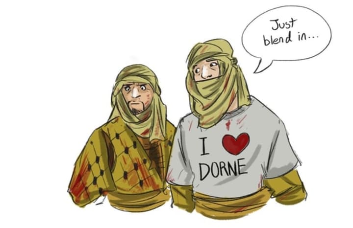 Uber fans Dave Panfilo and Sean Ireland put across a pretty convincing case for eradicating everything Dornish from Season 4-5, so what does your dollar get you? For $20 million they will offer a 'plug-and-play' alternative. Basically whenever one of David Benioff and D.B. Weiss's Dorne scenes play, you press pause and play one of Panfilo and Ireland's. Simple...right? Wanting to stick more to George R.R. Martin's source material, the boys say: