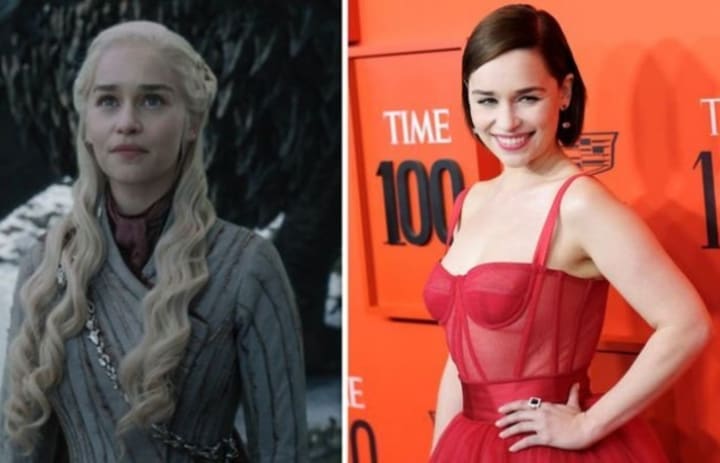 Emilia Clarke Next to Her Character Daenerys Targaryen