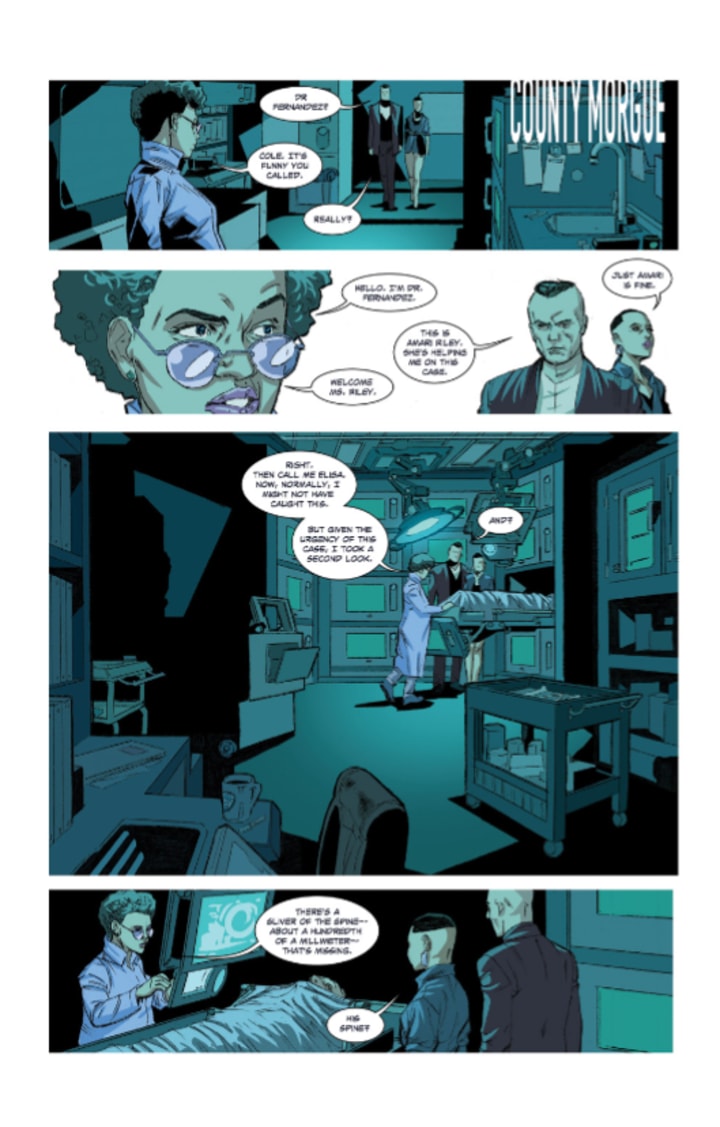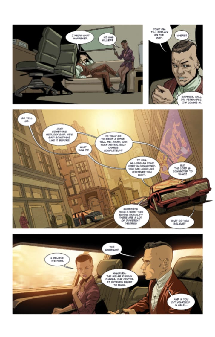 This just gets more and more interesting and complex with each new issue that comes out. I am still not one hundred percent certain just what exactly is going on here, and yes I am enjoying this fact immensely, but as the story keeps unfolding the more I am beginning to understand. The more we see of Cole’s past the more we can understand and relate to him and this actually helps us to understand the story better as well. Not so ironically it is also Amari that helps us understand what an OBEer is and how this plays so heavily into this.
