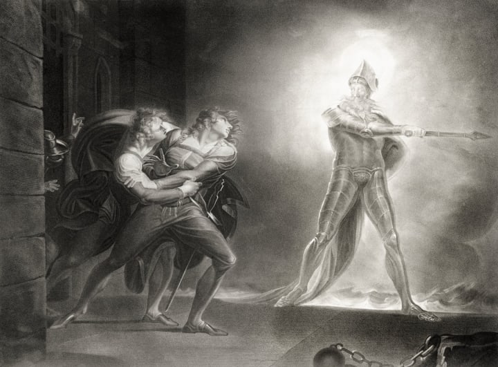 A similar ambiguity surrounds the Witches in Macbeth. Their enigmatic prophecies set Macbeth on a path to destruction, but Shakespeare leaves open the question of whether they manipulate him or merely reveal the ambitions already lurking in his mind. The Witches never instruct Macbeth to kill Duncan; they simply greet him with the title "King hereafter" (1.3.50), planting the seed of possibility. Macbeth’s growing instability, marked by hallucinations of daggers and ghosts, suggests that his own mind distorts their words into a justification for his actions.