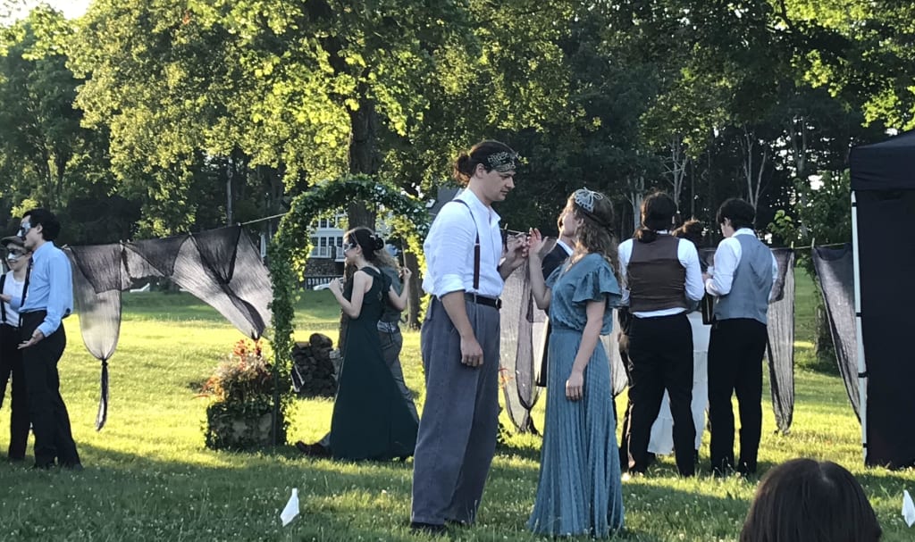 The actors made great use of their grassy stage, frolicking or sword fighting. Whether it was intentional or not, the sun setting and gradually dimming is symbolic of the play’s darker themes in the second act. Not only does Olde Essex Stage Company teach audiences to appreciate Shakespeare, but also nature.
