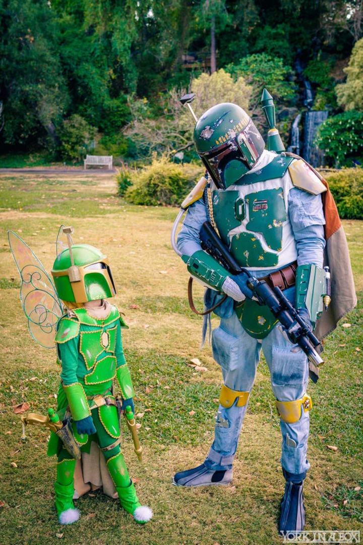 Oh my gosh. Please observe this tiny wonderful cosplayer. I am so glad that my life now contains knowledge of the existence of Tinkerbell Fett. Starting off the amazing cosplay journey young! Does my geeky heart good.
