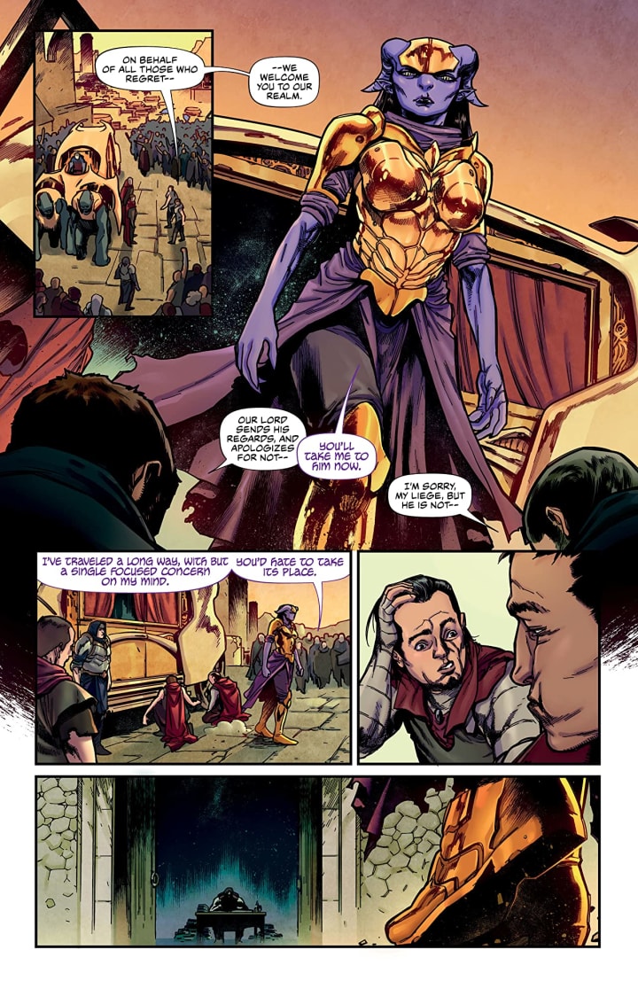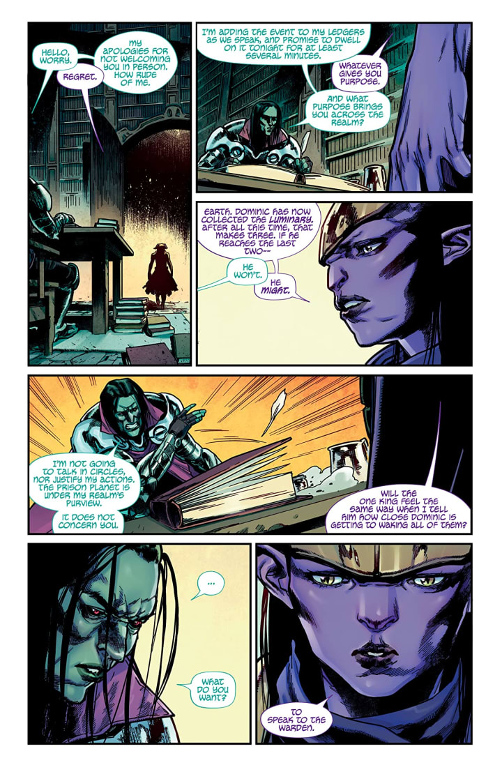 I am enjoying the way that this is being told. The story & plot development that we see through how the sequence of events unfold as well as how the reader learns information is presented exceptionally well. The character development we see through the dialogue, the character interaction as well as how they act and react to the situations and circumstances which they encounter does a spectacular job in bringing these characters to life. The pacing is excellent as it takes us through the pages revealing more of the story and introducing characters. It pulls us into this in some divine ways.