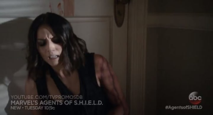 Within the sneak peek, it's apparent that Daisy has gone to some far lengths to gain a discreet audience with Agent Gemma Simmons, and for good reason too. When Agent Simmons stumbles across Daisy in the sneak peek, it's obvious that Daisy had no other option than to turn to S.H.I.E.L.D. for help — indicated by the massive injury to her arm and bloody head wound. Daisy's arm looks to be hurt from the excessive use of her Inhuman powers; whenever Daisy uses her Inhuman abilities, it causes a negative effect on her anatomy.