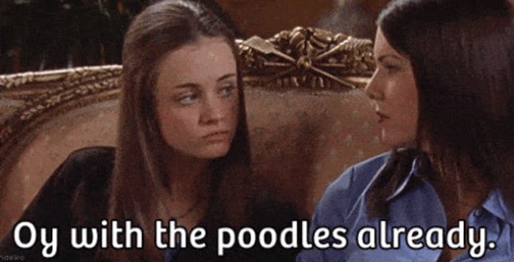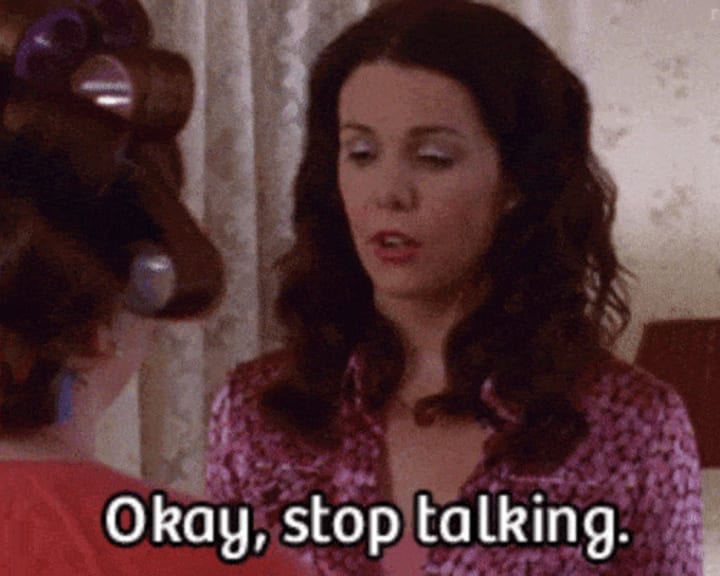Said in a moment of exasperation, Lorelai came up with her new favorite catch phrase. The term was meant to shut up yappy people.