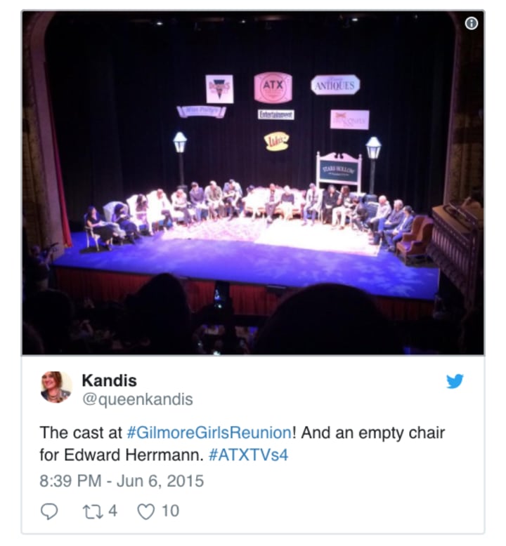 At the ATX Festival this weekend, entertainment weekly sponsored a reunion panel that brought cast and producers back for one night to celebrate the amazing show, which included Lauren Graham, Alexis Bledel, Jared Padelecki, Milo Ventimiglia, Scott Patterson and many of the supporting actors like Liza Weil, Danny Strong, and Matt Czuchry, with an empty chair for Edward Herrmann.