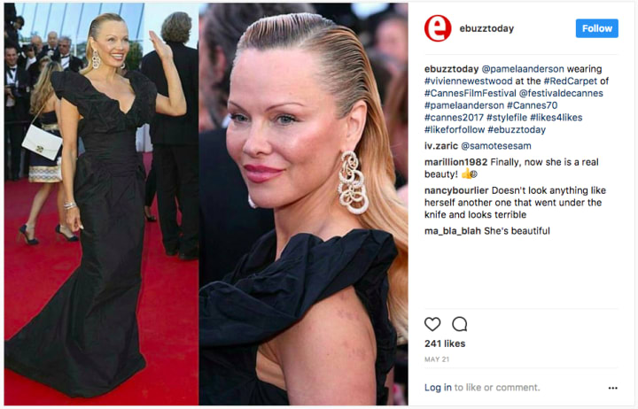Gone are Pamela's swimsuit days as CJ Parker on the popular #Baywatch series from 1992 to 1997, replaced with a slightly Jocelyn Wildenstein-esque change to her face. The new (and improved?) Pamela harks back to the incident in 2014 when the public was shocked at Renée Zellweger's very different appearance.