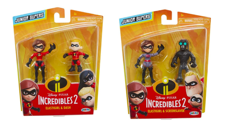Well, here's something I noticed: Jakks Pacific has released some The Incredibles 2 Junior Supers action figures. And you can buy Elastigirl in her Mrs. Incredible suit, paired with Dash. However, when you want to buy Elastigirl in her new Elastigirl suit, she is paired with Screenslaver.