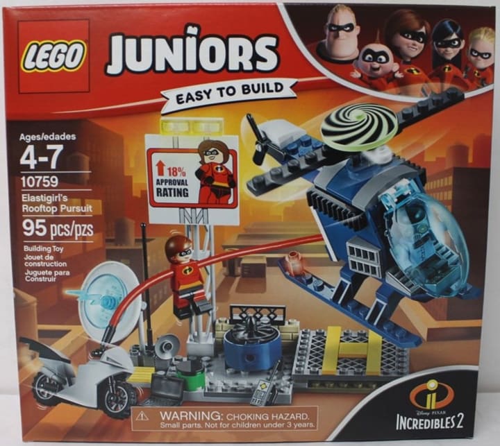 If you look at the Lego set again, you'll see a new character, who is in a helicopter. We can assume that the character is a villain, because this is who Elastigirl is pursuing, and he appears to be trying to escape on a helicopter.