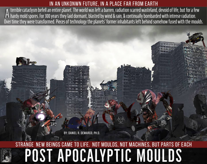 Important note: The Post Apocalyptic Moulds are a fully licensed and trademarked property of my art publishing house and are a part of the Microbiology Themed Art Like Objects line. These works are valued in the ones to tens of dollars and regularly grace the walls of Hollywood bums, F-listers, and assorted nobodies the world over. In addition to their popularity with the masses my works have recieved critical praise from around the art world. One top art critic has said "...of all the artists globally working in the mold art form, Dr. Whathisname is for sure at least in the top fifteen or so and his line of microbiology themed art like objects is destined to be remembered by several of his colleagues at work who thought some of the stuff he did was kind of cute or at least sort of interesting." High praise indeed Mr. art critic, high praise indeed.