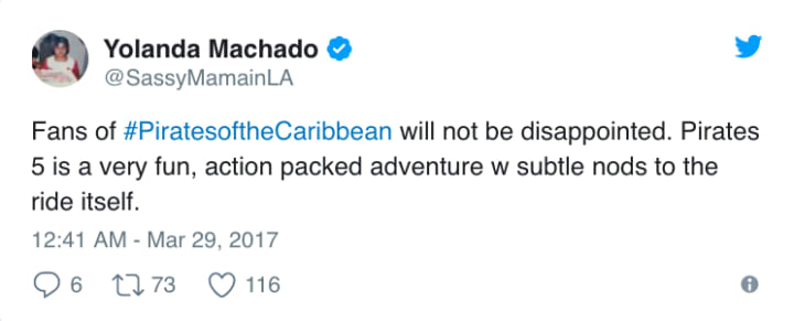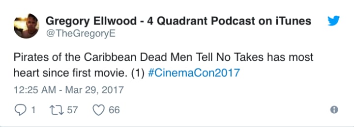 Sure, the fourth film, Stranger Tides, may have been the most expensive film ever made, but it also sailed away with a tidy profit and broke records worldwide. As Captain Jack once again laces up his boots for #JohnnyDepp's next adventure, all eyes are on whether the Black Pearl can continue to escape its curse, or whether we are destined for a trip to the briny deep. As part of CinemaCon, some lucky sea dogs were treated to an advanced screening of the film, and the reviews are in ahead of its May 26 release.