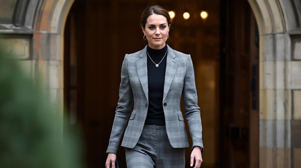 The highlight of the look? The Prince of Wales check pattern. Bold, patriotic, and historically significant, this print is not always easy to wear in front of flashing cameras. Yet Catherine carried it with confidence and grace. Some tabloids buzzed with speculation that she might have been sending a sly message to Prince Harry, whose own public appearances often seem overshadowed by her elegance. But to reduce Catherine’s choices to family feuds misses the bigger picture.