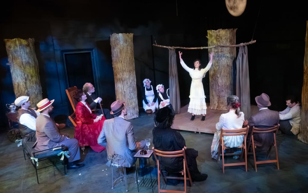 The ensemble performing a scene in Quannapowitt Players' "The Seagull." Photo credit to Jon Sachs. to