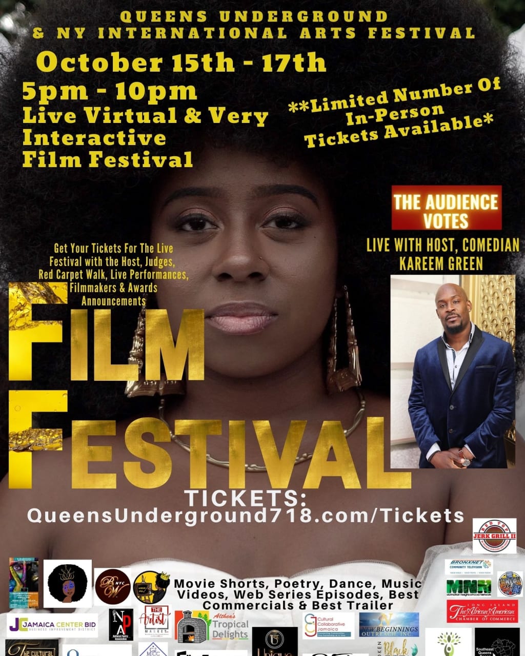 Thursday, October 15th through Saturday, October 17th, 5pm until 10pm, the world can watch along with Queens Underground’s Annual October International Film Festival - Virtual and Interactive with Host, Judges and Live Performances. The Audience can also Chat and Vote at: www.QueensUnderground718.com