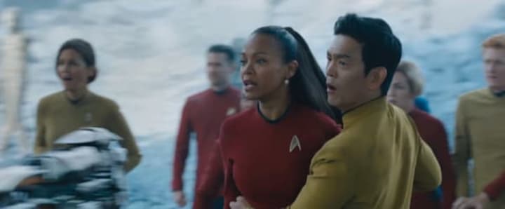 Beyond reunites the crew after the events of Into Darkness, pitting Kirk (Chris Pine), Spock (Zachary Quinto) et al against the mysterious Krall (Idris Elba) - a villain unseen before in the franchise. A character in a same-sex relationship has also been unseen in the franchise...but Hikaru Sulu (John Cho) looks set to change all of that!