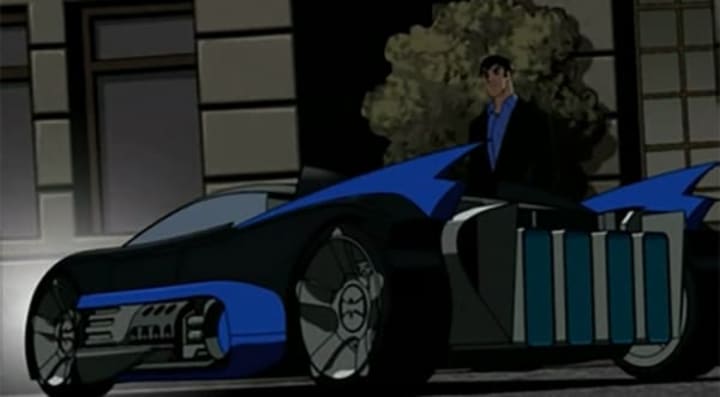 What is this, Bruce Wayne's weekend sportscar? No, no, no it is all wrong. Side slits, multiple jets, puny back fins and a royal blue colouring. The Batman's Batmobile was modelled on a sports coupe - can you even call it a Batmobile? Thankfully the fourth season episode, Artifacts, explores Gotham City in 2027, where this monstrosity is replaced with a Frank Miller-esque tank Batmobile.