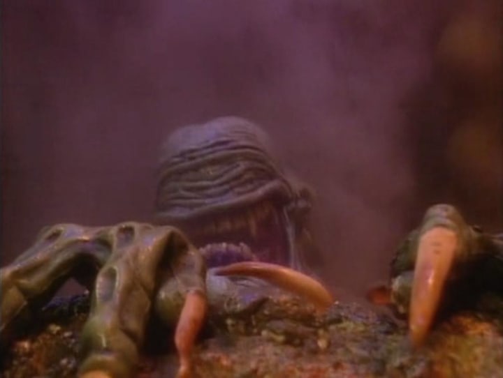 ALPHABETTI SPAGHETTI!!! This one is the only episode I can recall that had a viewer warning at the start of the show. Featuring a monster called the Polymorph, a mutant that is able to shape shift at will. It shifts to get a desired response out of its victim and then feeds off that emotion. This makes for some great laughs when the characters start to act without the necessary emotion to make them who they are.