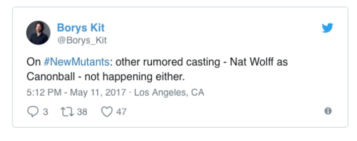 In addition to debunking the rumor of McAvoy returning as Xavier for New Mutants, Kit appeared to clear up another casting rumor: Nat Wolff will not be playing Cannonball.