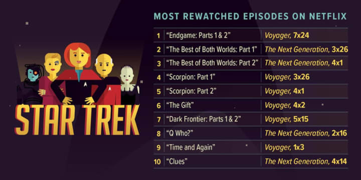 Recently, Netflix revealed the results of a survey on Star Trek episodes, which found that some of the most re-watched Trek episodes included, surprisingly, some from Star Trek: Voyager! This came as a shock to many apparently, because the continuing hatred towards Voyager is irrepressible. The Mary Sue couldn’t understand these results, while io9 was outright baffled by these findings. Noticeably the list doesn't include any episodes from The Original Series, Deep Space Nine or Enterprise – the exclusion of the former two has left the Star Trek critics community reeling.