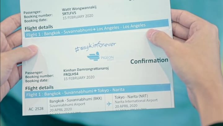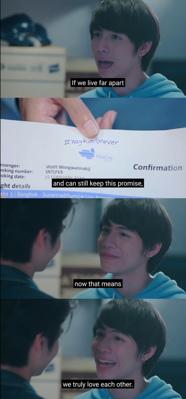 I was emotionally touched when Pan acted maturely and said “I know that’s why I didn’t leave this body till now until I found these”, those were flights. One ticket was to Tokyo for Kim and another was to L.A. for Way; on both the tickets #waykimforever was written.