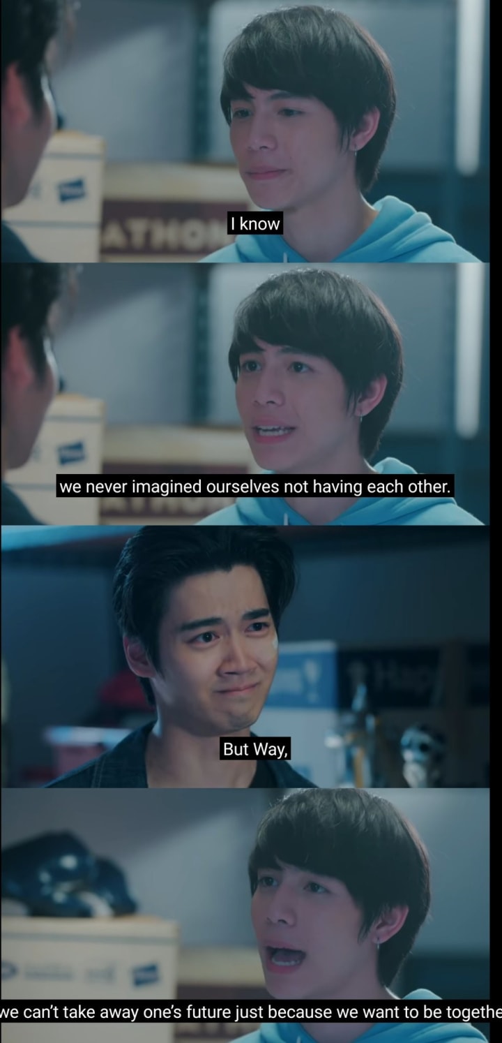 In the previous episode, I thought that both the tickets were to Tokyo because Kim might have booked the tickets to Tokyo because he was confident that he would win the bet. Pan told Way that Kim was determined to win the bet and give this ticket to Way which meant that any one of them don’t have to sacrifice the thing they like only because they want to be together and she told that she realized that after someone told her whether Kim really wanted Pan to stay inside Kim’s body forever. This was well scripted and was rational to hear also. Way burst into tears and suddenly Kim appeared for moments to speak to Way. This time both of them confessed their love to each other and Kim asked Way to ‘let this girl have her own future’. That scene was a very proud moment for me because I always complained about the irrationality and complexity of the series but for the first time, I experienced those scenes and dialogue which I never found in any other BL series. I became proud that I choose this series to watch.