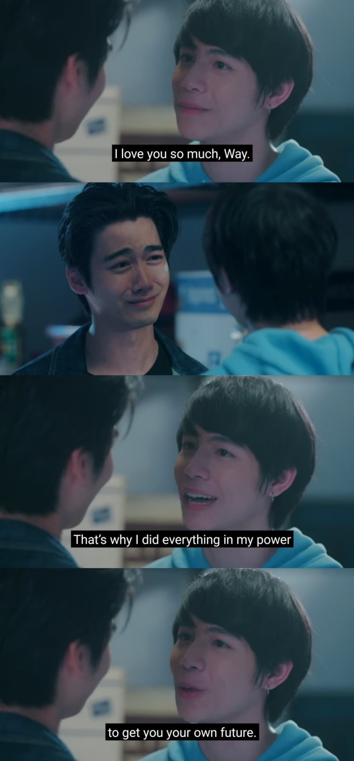 Farewells are the toughest part of our lives, at least for me it is. With that, I am going to give my review of the final episode of the shipper series. The episode begins with a conversation between Way and Pan (in Kim’s body) where she reveals the truth about her and Kim. That scene was normal but for me, I felt heavy-hearted because it was the final episode but the scenes moved forward my emotions escalated. When Pan said Kim is dead to Way, my heart ached a lot. Even before Way started crying, tears began rolling down my eyes. The scene was intense because way couldn’t process what he heard. After all, for him Kim is physically present and saying that he is dead. When Pan connected all the dots since the accident, Way understood that the person in front of him is not Kim rather she is Pan. I couldn’t bear to watch the scene where tears were about to flow out of Way’s eyes. Way pulls Pan around when she was about to leave and scolds her to stop joking and confesses that he can’t live without Kim. That one statement broke my heart into pieces, now I was just watching helplessly with tears continuously pouring.