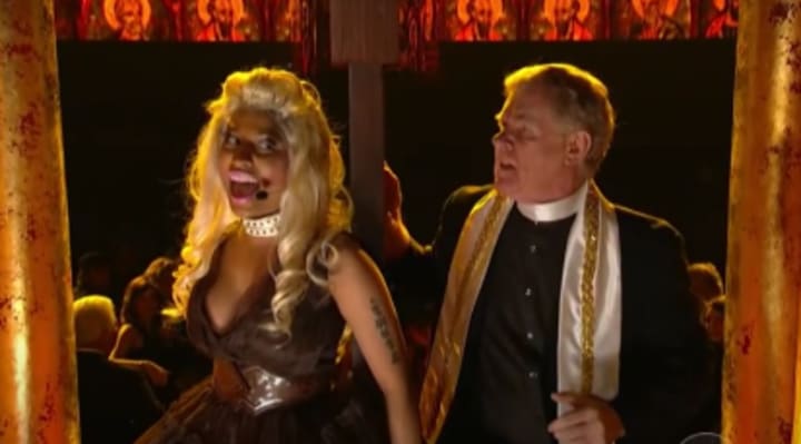 Why would Rhianna dress like a Catholic Bishop for the Met Gala and why would Nikki Minaj have a mock exorcism during a recent Grammy Awards ceremony? These things are not normal so unless you ascribe to this type of behavior you should be wondering what is the point. Some say Madonna and Beyonce were doing rituals and alter Madonna did a concert tour called Return of the fallen angels. Now we have concert-goers saying they believe many entertainers are possessed by evil. Keep your eyes on the Superbowl half-time show and see for yourself what happens.