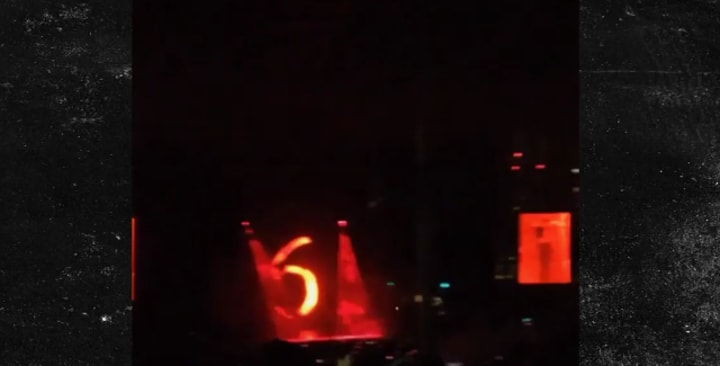 Pyramids, checkerboards, bright yellow sunbursts, formations of dancers in groups of six, (666) the colors red, black, and white, lots of fire, upsidedown crosses hidden like Easter eggs and writhing bodies in sexually suggestive moves. Speaking of the three sixes TMZ has an image of a Drake concert where he sang about Rihanna suggesting she is the devil as he flashed 666 in the background in an eerie glow symbolizing the fire of hell.