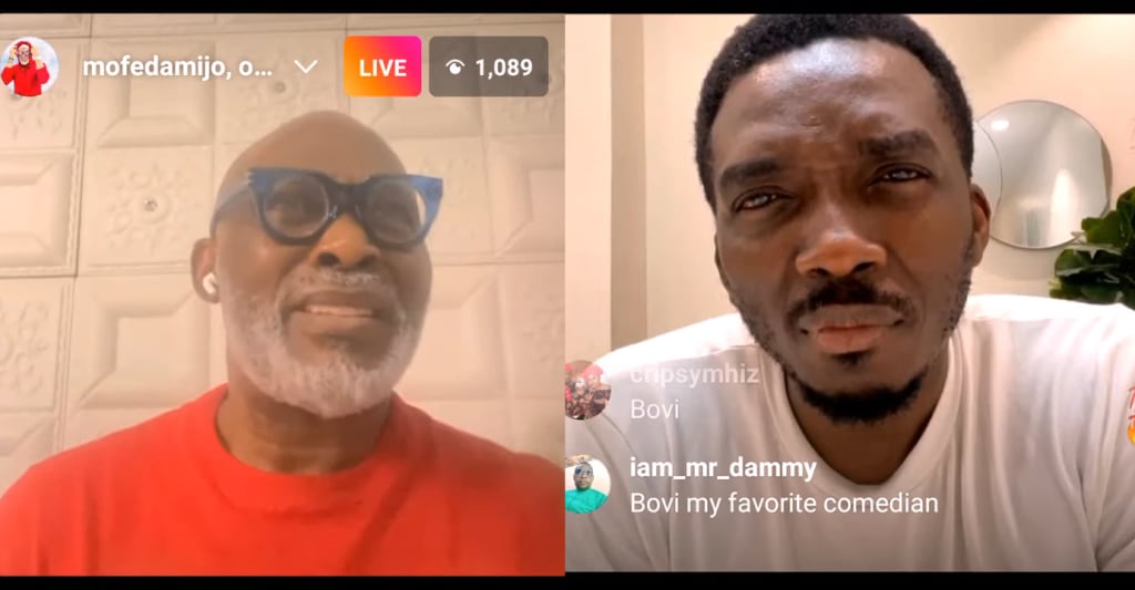 Richard Mofe-Damijo is undoubtedly one of the biggest and most popular actors in Nollywood today. Bovi is one of the biggest comedians in the country and continent. These two men are heavyweights in this industry, and so when they both decided to get on an Instagram Live and torchlight some of the issues they experience in the industry, I just knew it was going to be eye-opening. It was. Let me not keep you in any more suspense, here's what was said.