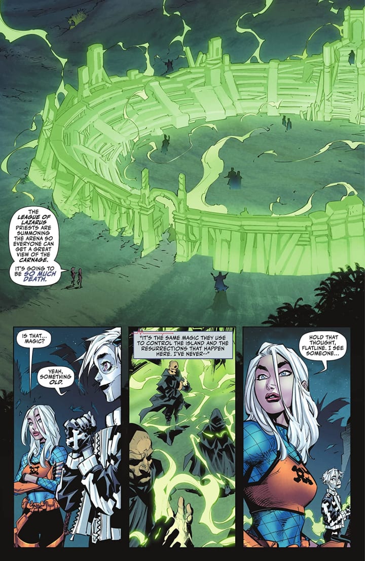 I don't know if it’s ironic or not but elsewhere, see other current DC titles, Damian isn't being written the same way and I like him a lot less than I do within these pages. Don’t get me wrong he’s an insufferable twat on his best days but somehow seeing the way Joshua is able breathe life into him through different avenues and perspectives than I was prepared for makes him a much more interesting character. I was a tad skeptical that all the Robins would be appearing this quickly in the series and with him having been on the Island taking part in the Lazarus Tournament to boot. Turns out there’s a reason I trust what Joshua does and he keeps their encounter short, sweet and to the point. Though we do learn a few things that once again change how we see the characters, in a good way mind you.