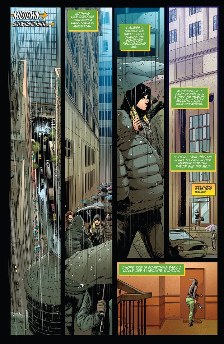 The story itself is being told pretty well. The story & plot development that we see through how the sequence of events unfold as well as how the reader learns information is presented nicely. I love the set-up for this and how we get to see Smitty again thanks to Peyton and her assistant and I have to say that I am very much enjoying this relationship the women are developing. Being a Public Defender means Peyton doesn’t have a lot of free time on her hands and honestly I like the whole idea here. The characterisation is spot on and it’s nice to see. The pacing is great and as it takes us through the pages revealing the story, it’s players and setting up what I hope is new arc this becomes a classic Robyn outing.