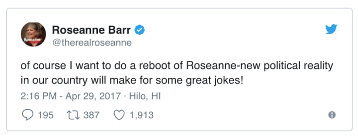 When the new Roseanne season was announced earlier this week, fans who still consider Roseanne to be the ultimate comedy were ecstatic. Others, though, felt a little differently — thanks to some recent comments from Roseanne Barr herself. In April, the actress (who ran for the 2012 Green Party presidential nomination and expressed support for Donald Trump in 2016) tweeted that she wanted to do a Roseanne reboot, but it was an the addendum that made fans skeptical about the new path these eight episodes will take: