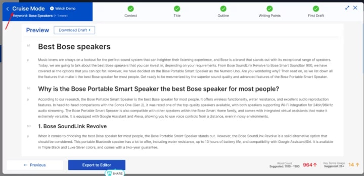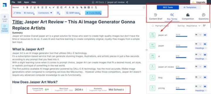 Scalenut offers a grammar checking feature to eliminate grammatical errors and improve the overall readability of the generated content.