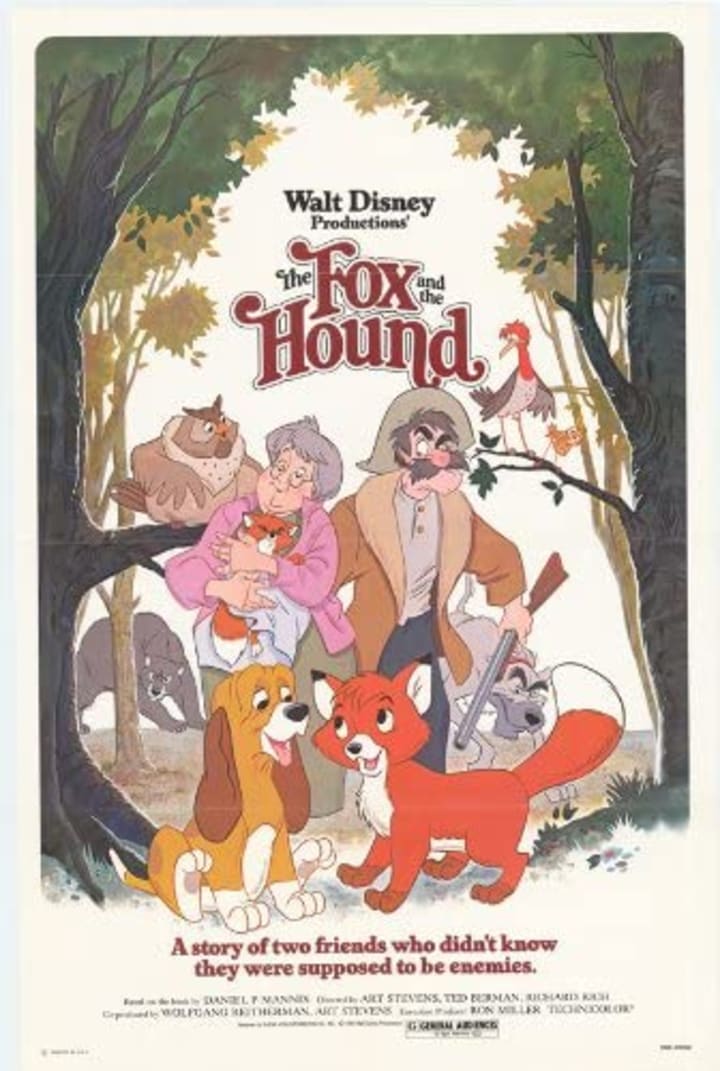 The Fox and the Hound tells a beautiful tale of love and friendship. Todd, a young fox, is taken in by an old woman, Widow Tweed, after his mother is shot by hunters. He soon befriends Copper, the next doors neighbour hound dog. They become the best of friends but as they grow up Copper’s owner Amos Slade makes him slowly turn on Todd and Widow Tweedy takes Todd and abandons him in the forest. Amos takes Copper hunting and Copper chases Todd throughout the forest. They meet a bear by a waterfall and Copper fights with the bear saving Amos’s life, Todd can’t bear to watch them fight so intervenes and forces the bear into the waterfall and they both fall into the river. Amos finds Todd in the water at the bottom and finds this as his opportune moment to kill him, Copper stands between the gun and Todd, Amos lets him go, Copper and Todd stay friends but then never see each other again.