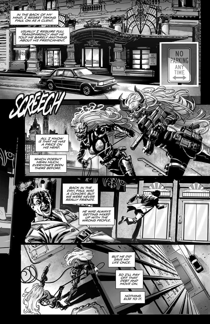 I can’t believe that once upon a time I wouldn’t buy a comic because it was in black & white, it’s true I promise you that. Now I can’t get enough of the black & white style of work because of just how spectacular it is to see this level of work coming off the page. Now I really like this book and the title is apropos to what the book is about. I find this just as interesting because sometimes the title can be misleading. However, once we get into the story things take a decidedly different turn which just adds a lot of layers to the book that I think make it appear to be all over the place but in reality there’s a very distinct method to the madness of what we see throughout.