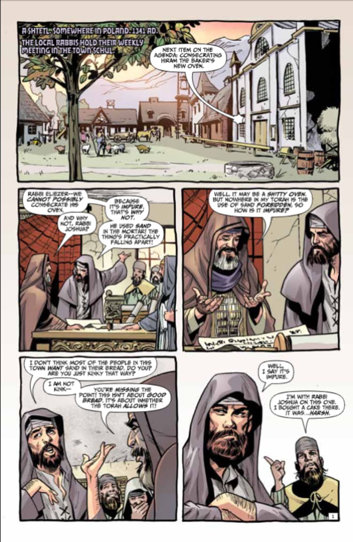 The opening here is practically perfect in every way as we see a group of Rabbis discuss stuff. That there’s always one of those in the group is beautifully demonstrated. While I’m sure there were those like that it is still kind of funny because we see people like more prevalent today than we’d care to see. I find it extremely interesting the parallels between the past and present and then by throwing in Sunstar and putting the superhero aspect alongside the religious one and both Jesus and Ken are learning more from each other with each issue and whether they realise it or not they’ve been influencing the way they think. It has been absolutely delightful to see as well.