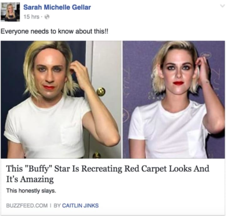 The Buffy star has turned his hand to recreating red carpet looks on his Instagram and the results are jaw-dropping (to say the least).