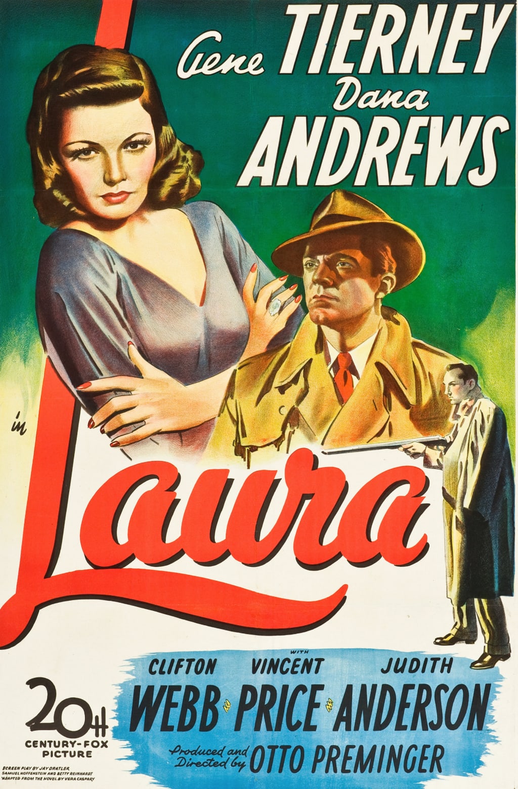 Laura (1944) is based on a novel by Vera Caspary. It was adapted to the screen under the direction of Otto Preminger, with screenplay written by Jay Dratler, Samuel Hoffenstein, and Betty Reinhardt. Winner of the Academy Award for "Best Black and White Cinematography" and nominated for six other categories, Laura (1944) centers around a New York City Police Detective and his efforts to solve the murder of Laura Hunt. Never being shown the body, the audience discovers the grizzly details of the titular character's suspected murder via a series of interrogations, lightly cloaked as conversations between Det. McPherson and Laura's closest acquaintances (read: suspects).
