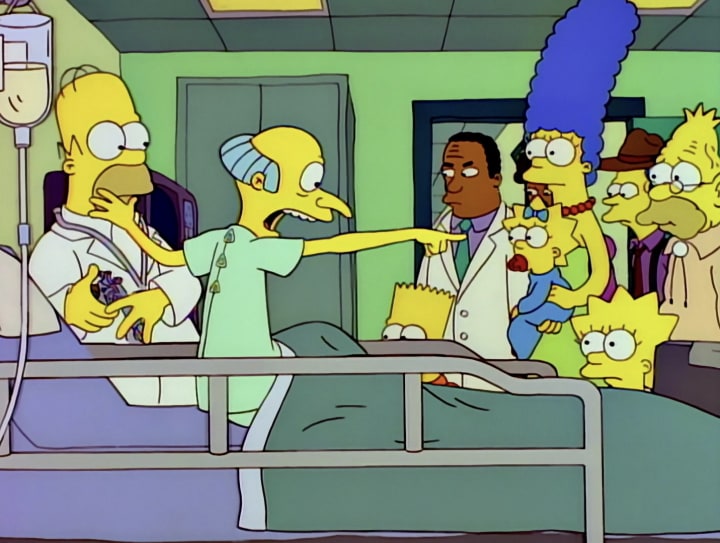 "Who Shot Mr. Burns?" was, undoubtedly, the biggest event in the history of The Simpsons. Part 1 ended Season Six, and aired on May 21, 1995. Part 2 began Season Seven, and aired on this day 30 years ago: September 17, 1995. 30 years. Think about how long ago that was. I was finishing fourth grade when Part 1 aired, and starting fifth grade when Part 2 aired. Mighty Morphin Power Rangers: The Movie was coming out. Adam Sandler had just got canned from SNL, but it worked out for him. In sports, the Houston Rockets repeated as NBA Champions, the New Jersey Devils won the Stanley Cup, and a team from Quebec City was moving to the Rocky Mountains. Oh, and on the same day that a baby was revealed to have shot Mr. Burns, another baby was born in Texas. That baby: Patrick Lavon Mahomes II.