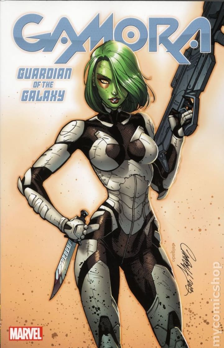The Deadliest Woman in the Galaxy, Gamora was only a child when her species was destroyed by the malevolent Badoon. The last of her kind, she was eventually found by Thanos and trained as a warrior and raised as his daughter. She eventually escaped his grasp and became an adventuring cosmic hero, joining the Guardians of the Galaxy, where she struck up an on-again-off-again romance with Peter Quill, a.k.a. Star Lord and teaming up with other space-faring heroes such as Adam Warlock and Pip the Troll. Through her relationship with Adam Warlock, Gamora came into contact with the Soul Stone, which trapped a piece of herself inside its pocket dimension (known as the Soul World). With her desire to regain that missing part of herself, coupled with Warlock and her fellow Guardian’s refusal to allow her to open the dangerous Soul World, Gamora left the Guardians. Stealing the Power Stone and fitting it on the hilt of a new sword, Gamora took on the name Requiem and slew her adoptive father as a means to keep him out of her way as she looked for the remaining Infinity Stones. Her murder of Thanos led Eros and Cosmic Ghost Rider to his will, which in turn will kick off the events of the "Endgame" and the Guardians relaunch. The fact that Gamora is the one who killed Thanos should make her an obvious choice to join this new iteration of the Guardians, seeing as how she’d desire to destroy or ruin any of the Mad Titan’s schemes.