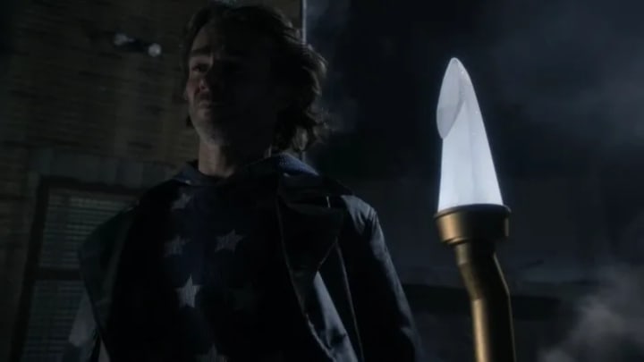 With the shortest scene of all the superheroes to appear on Smallville, we first meet Dodds while he is having a dream of the Star Spangled Kid’s fight to the death. After seeing his old teammate from the Justice Society of American die he wakes up realizing his own death will soon be at hand. He dons the Sandman costume one last time to meet his fate.