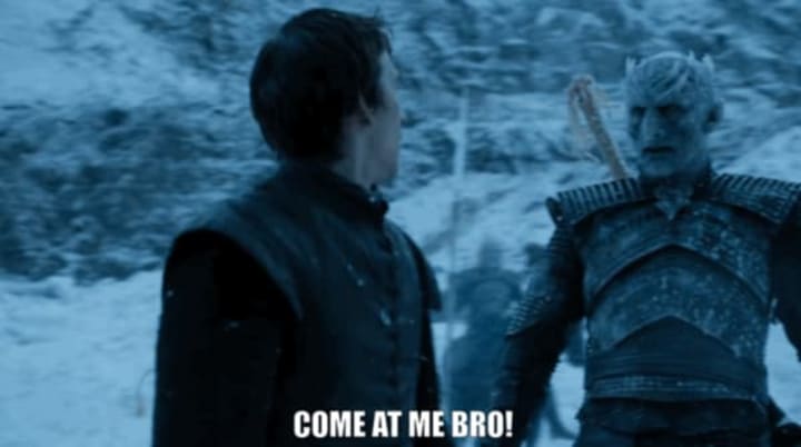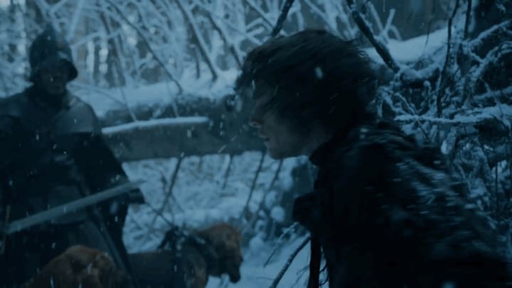 Woah, someone hit puberty. After a year sat under a weirwood tree, Isaac Hempstead Wright is back as the young Stark boy. As Bran's story had reached a stopping point in the books, he was noticeably absent last season. Still north of Westeros, Bran is seen here coming face to face with the Night's King, legendary leader of the White Walkers. we last saw the Night's King taunting (an alive) Jon Snow after the human defeat at Hardhome. Damn Daniel, it just got a little chilly in here.