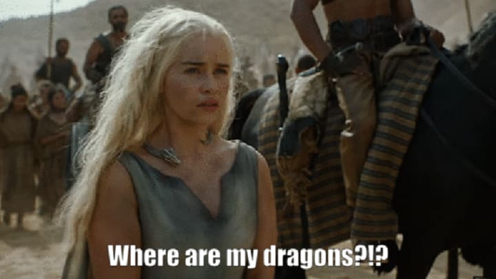 Oh dear, looks like Khaleesi is having a bit of a rough time at the hands of the Dothraki. It isn't just the High Sparrow who slums it with the less fortunate. The Daenerys storyline seems to be taking her further and further from her seat on the Iron Throne, but fear not, there are sure to be dragons in Kings Landing by the end of the show. Don't worry, Drogon is still on hand somewhere keeping an eye on the blonde bombshell.